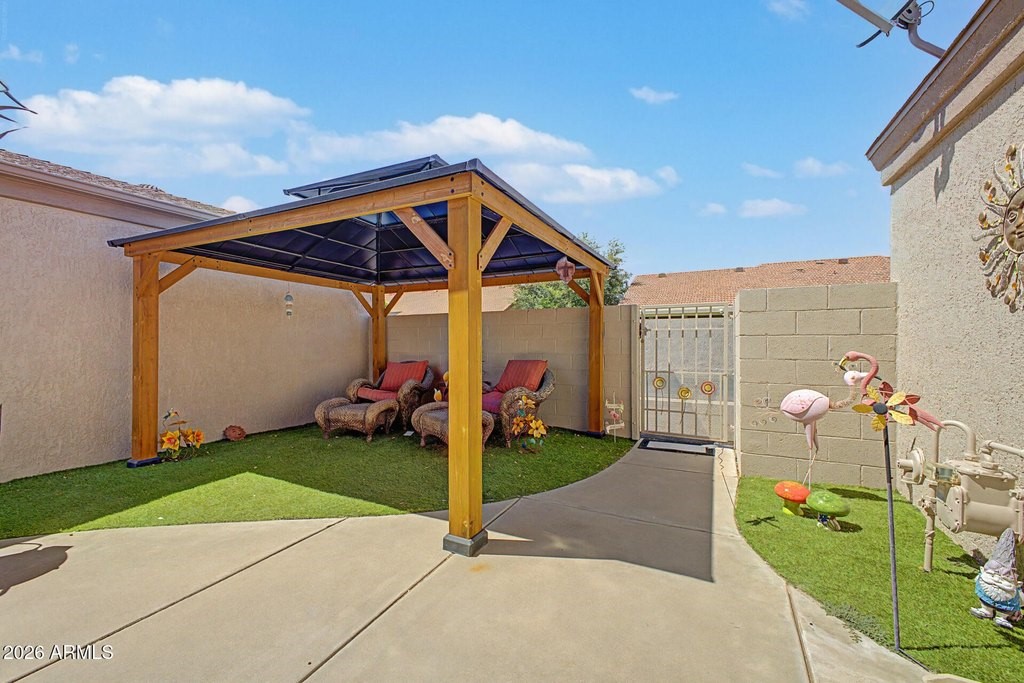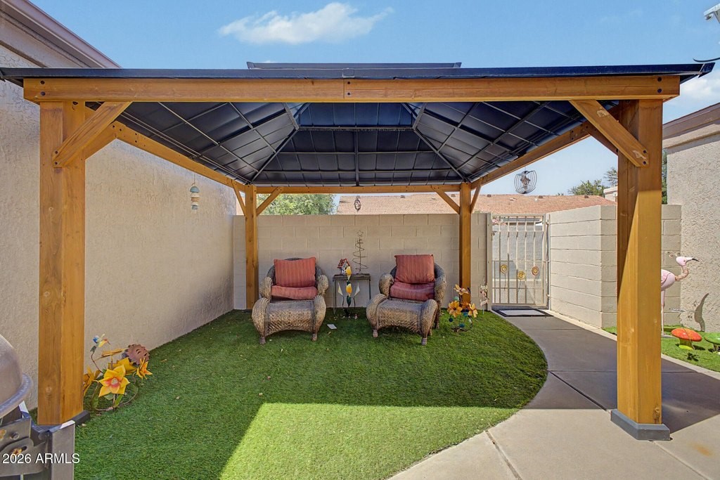 Wait until you see this absolutely stunning 2-bedroom, 2-bath patio home--designed to impress even the most discerning buyer. From the moment you step inside, you'll notice the beautiful luxury vinyl flooring that flows seamlessly throughout the entire home, creating a modern and cohesive feel. The updated kitchen is a true standout, featuring elegant quartz countertops, brand-new appliances, and plenty of space for cooking and entertaining. Comfort is key with a newly installed air conditioning system, ensuring year-round enjoyment. Step outside to your private backyard oasis, complete with low-maintenance artificial turf and a charming gazebo--perfect for relaxing evenings or entertaining guests. This home truly has it all--style, comfort, and thoughtful upgrades throughout. A must-se